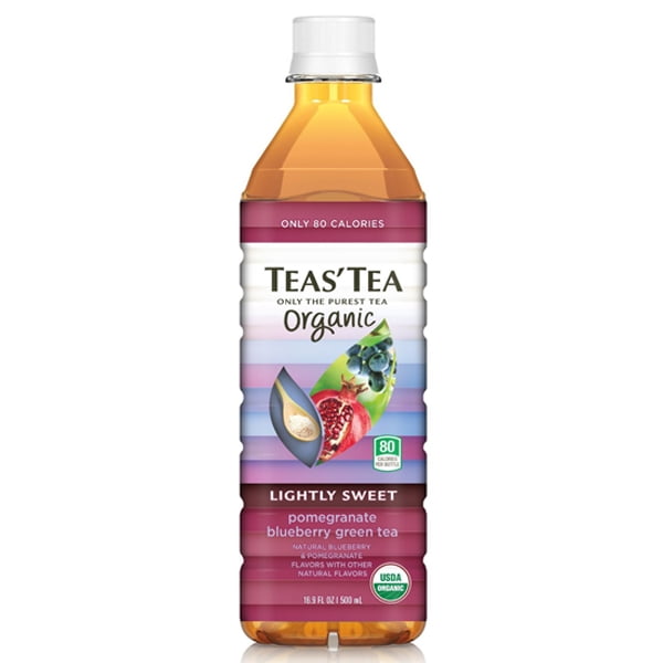 Teas Tea artfully balances taste, clarity and quality. Teas' Tea Organic Lightly Sweet Pomegranate Blueberry Green Tea 16.9 oz plastic bottles come in a pack of 12.